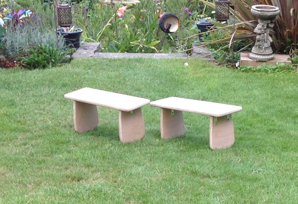 Well, they may not exactly be the world’s most technical pieces of furniture but I did get two stools together before the end of today. They still need staining and varnishing but they are fully functional (I have sat on them to them and taken them for a “test drive”) so all is good!